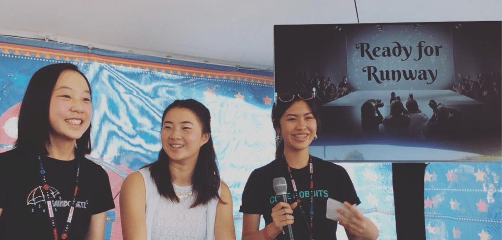 Alyssa Cho (11th grade), Jacquelyn Chim (9th grade), and Katy Lee (9th grade), present programmable clothing and accessories at the Bay Area Maker Faire.